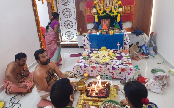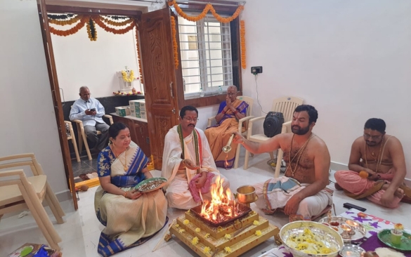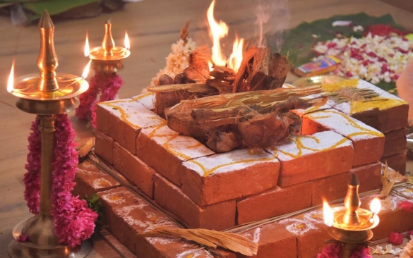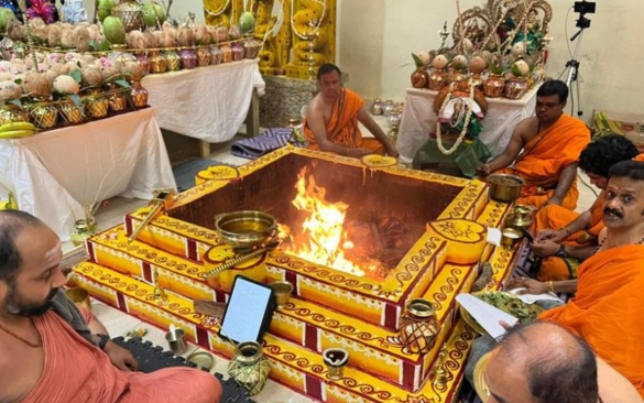 The homam involves the recitation of Vedic mantras, offerings