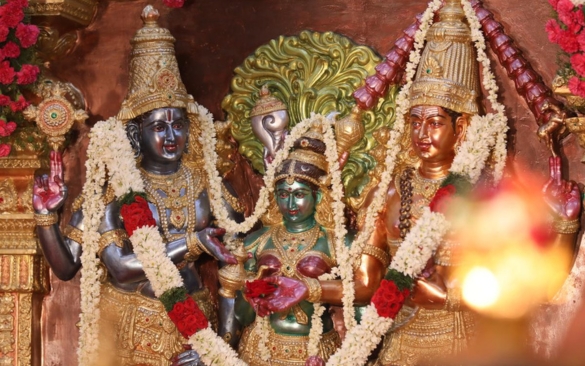Mangal Sutra (tying of the sacred thread), Saptapadi (seven steps around the sacred fire), and the exchange of vows and garlands. The ceremony is conducted by the Hindu priest,